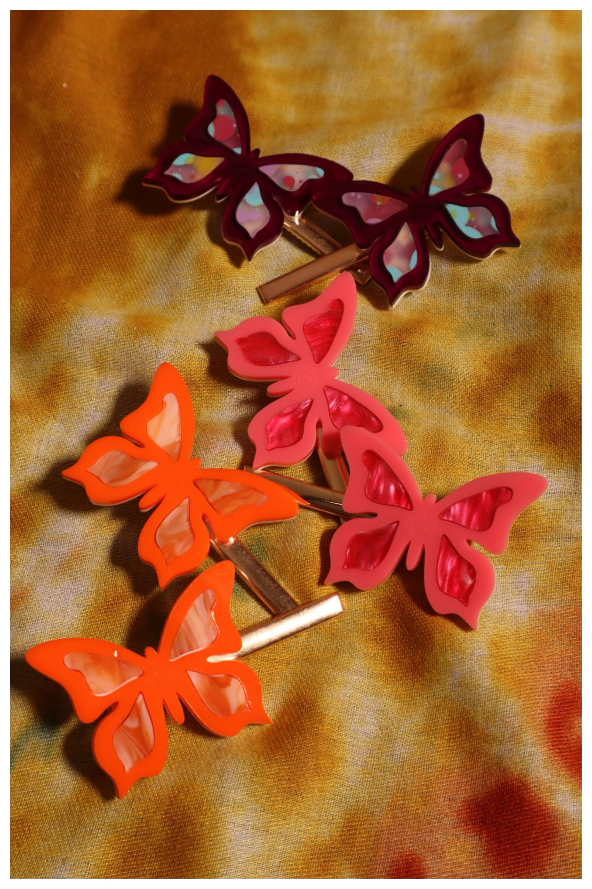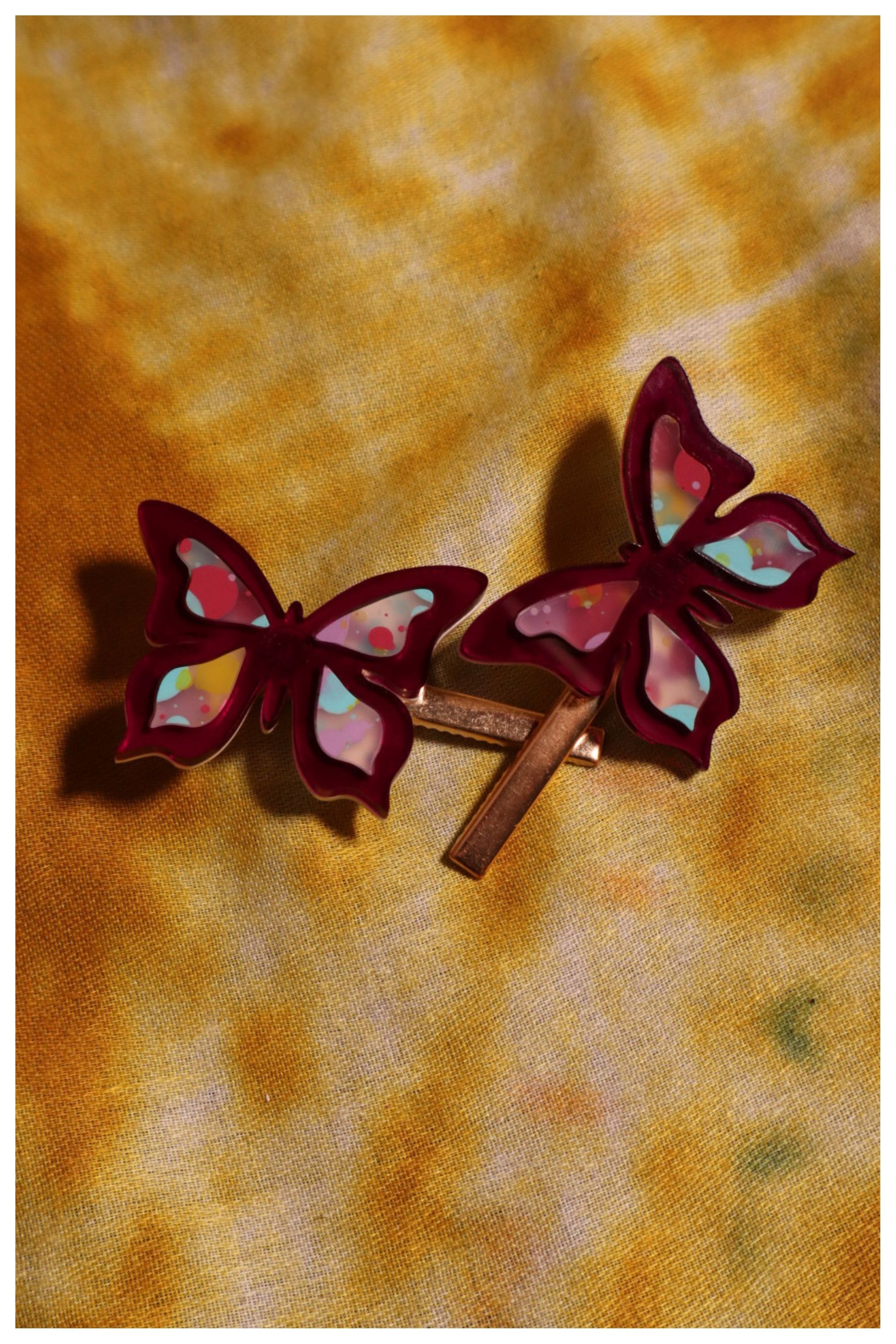 Ready to take flight? Our Fly..Butter..Fly Clippies add a touch of fluttery fun to any look - crafted with lightweight acrylic and a subtle, springy movement. So, rock these wings and embrace your inner bohemian beauty!