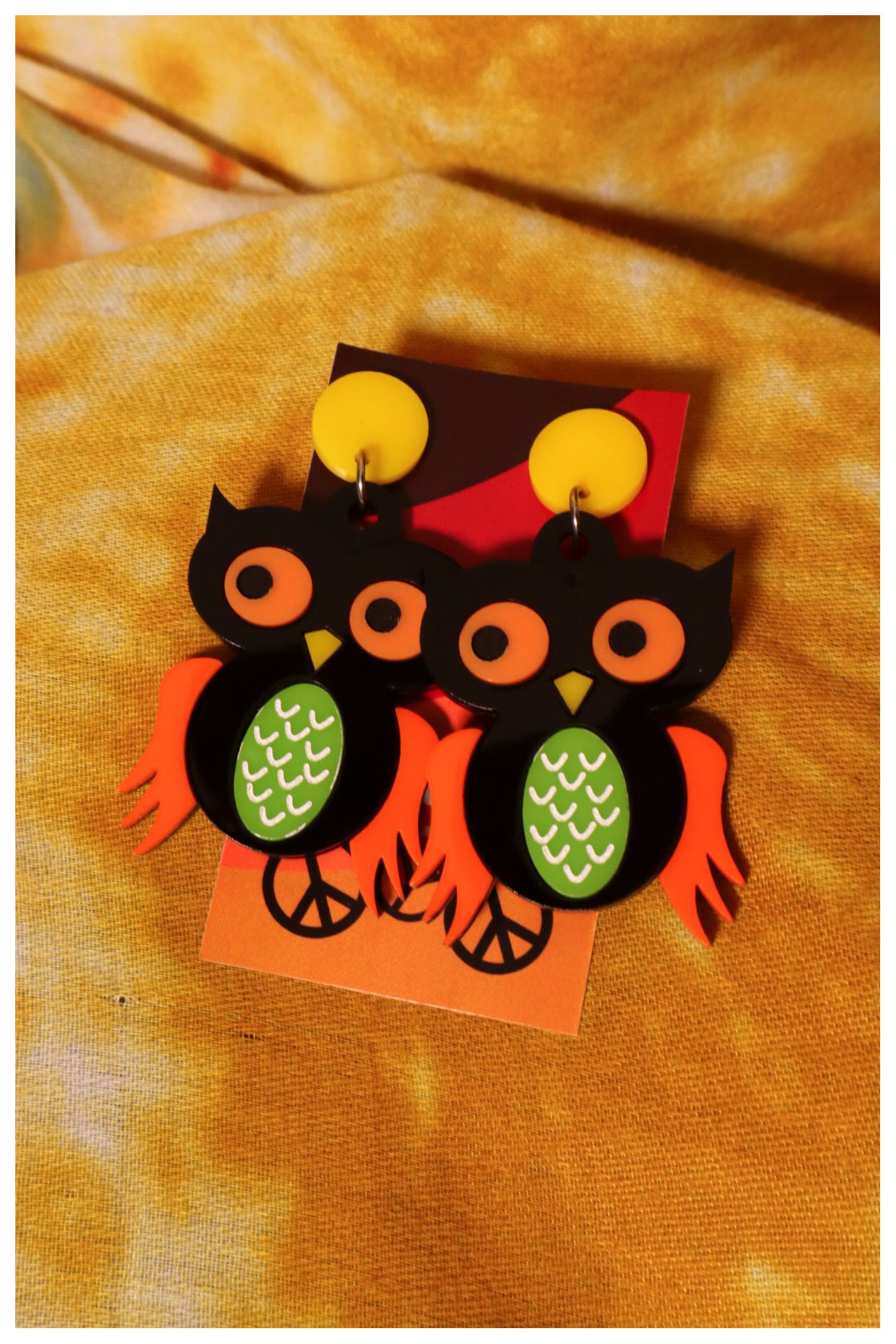 Challenge the norm with these unique Vtg Owl earrings! Handcrafted with meticulous attention to detail, each earring features engraved and painted GHC Halloween details. Make a bold statement and stand out from the crowd!